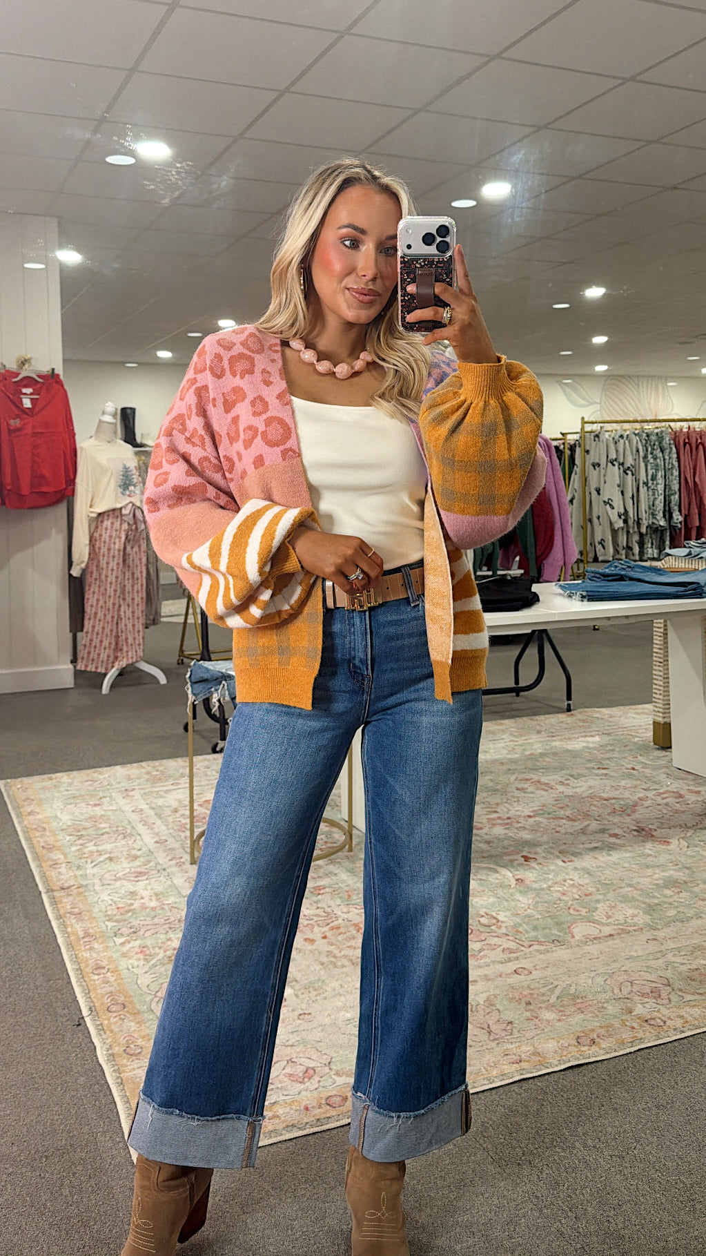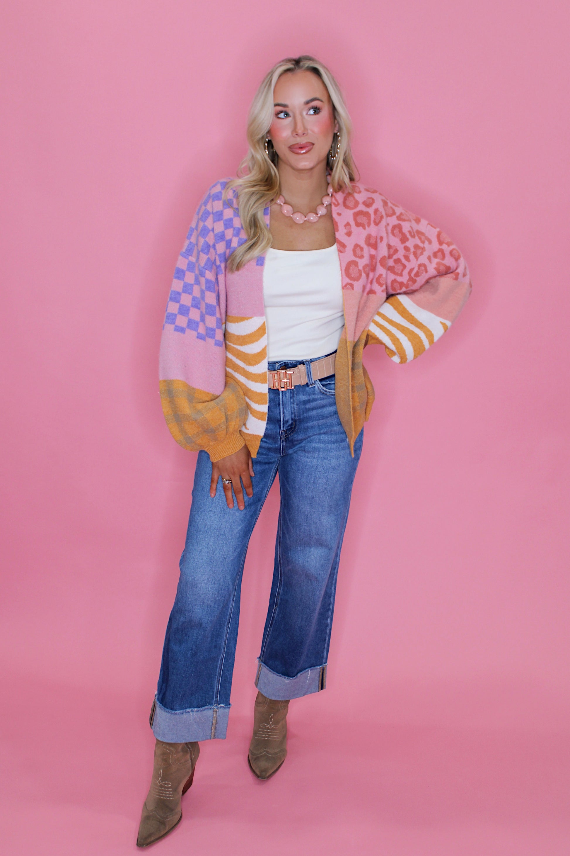 Wrap yourself in playful style with this delightful open cardigan featuring vibrant animal and checkered prints that bring instant personality to any outfit. Crafted from butter-soft material, it's impossibly cozy and warm—perfect for layering on chilly days or throwing over your favorite tee. The fun color palette makes it a versatile piece that pairs effortlessly with basics, while the relaxed fit ensures all-day comfort. Whether you're lounging at home or out and about, this cardigan delivers both style and snuggle-worthy softness.