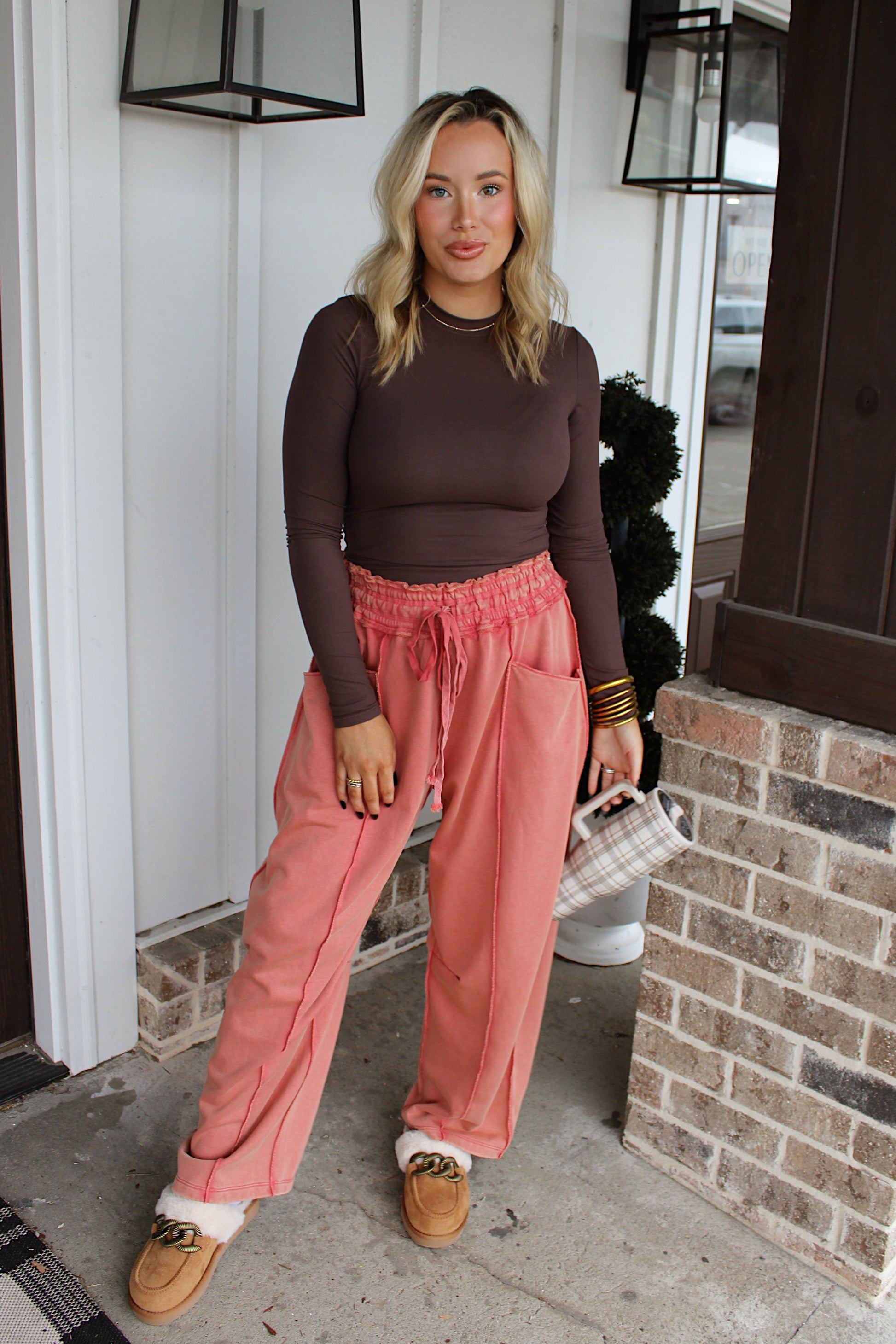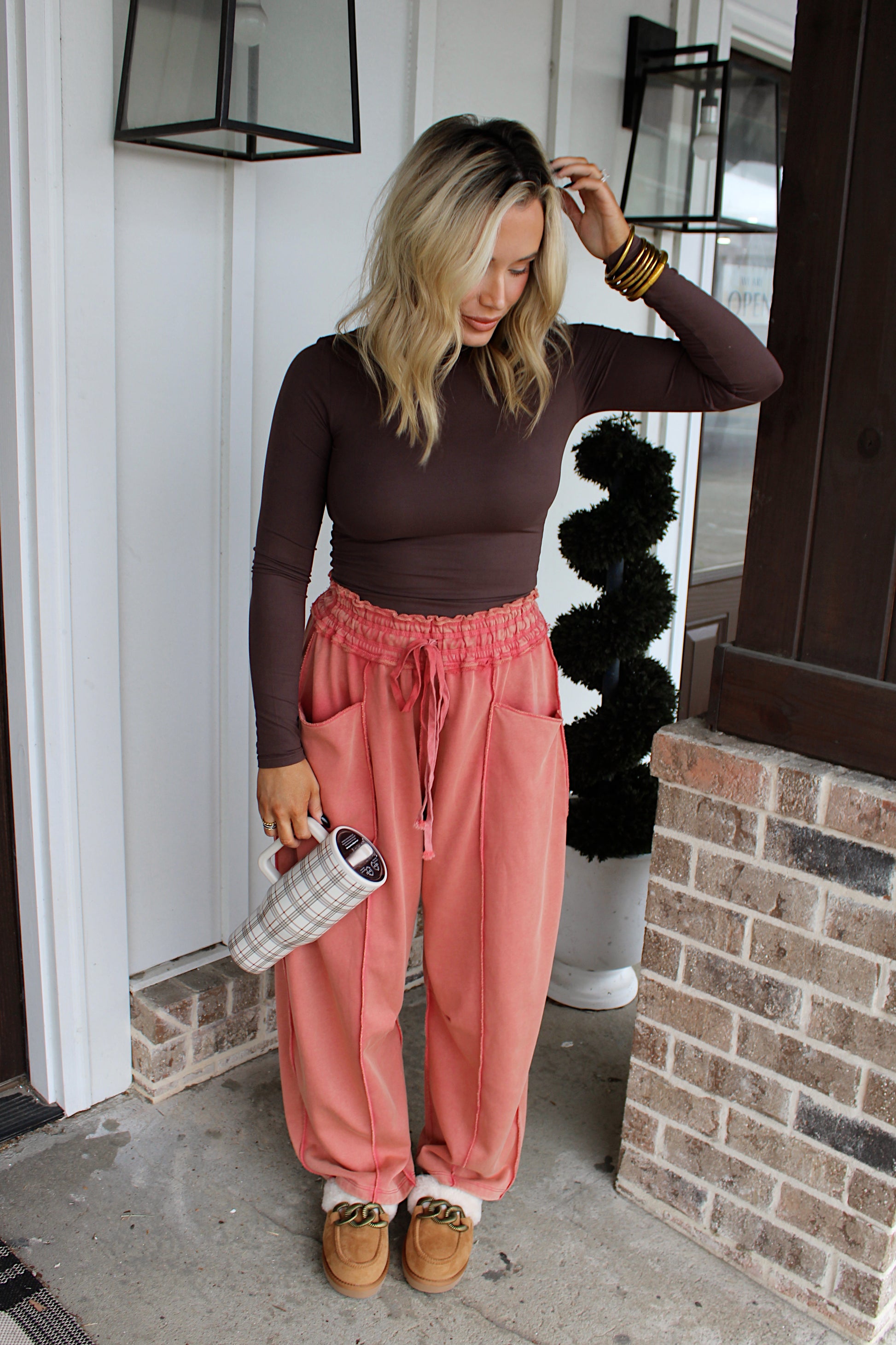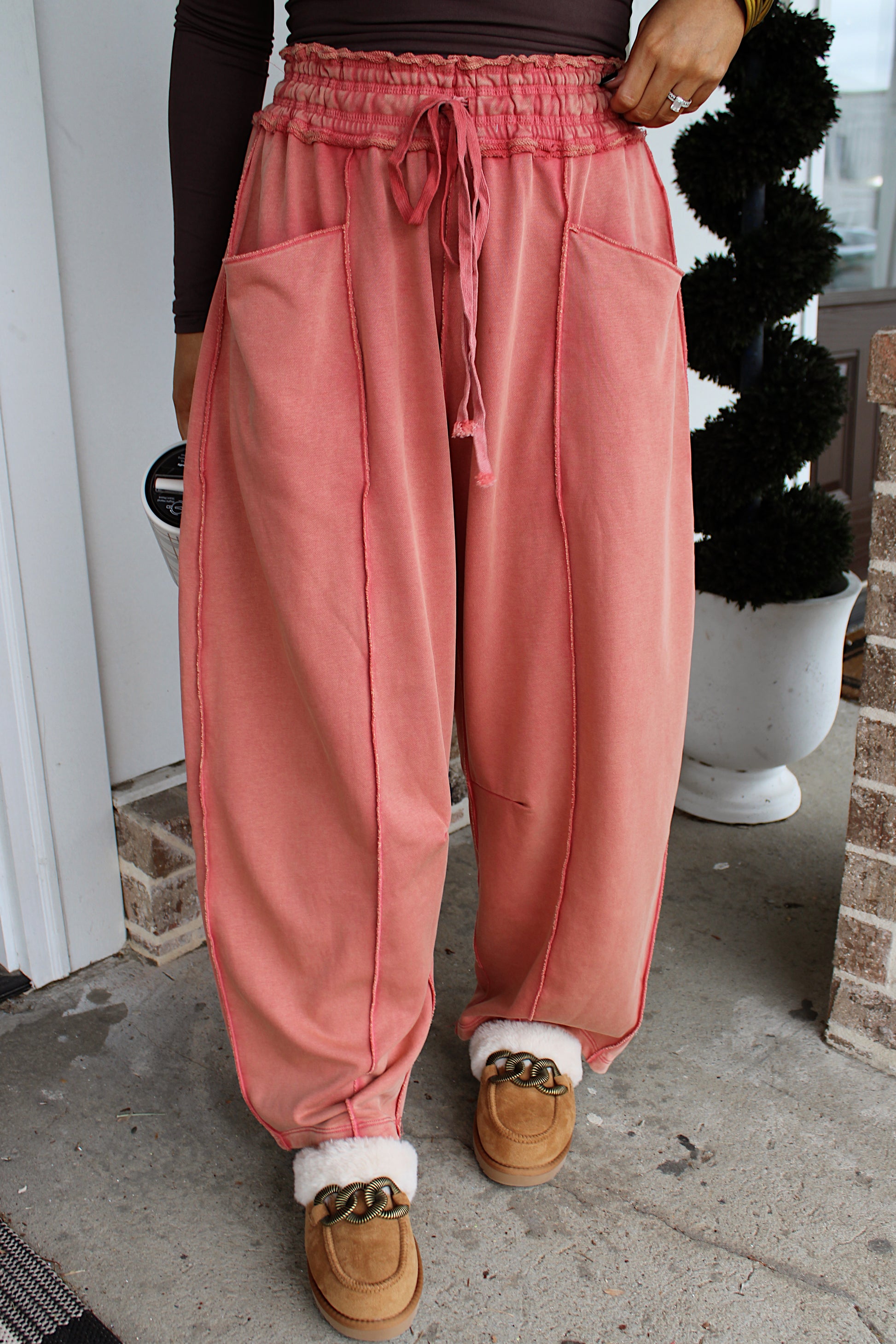 Barrel Sweats in Sienna Slouchy, cropped, and unapologetically cozy—these barrel-style sweatpants are your new comfort obsession. Featuring a relaxed fit that hits just right at the ankle, distressed detailing for that effortlessly cool vibe, and a rich sienna tone that pairs with everything. Perfect for lazy days, coffee runs, or when you want to look put-together without actually trying. Soft, stretchy, and designed to feel like a hug.