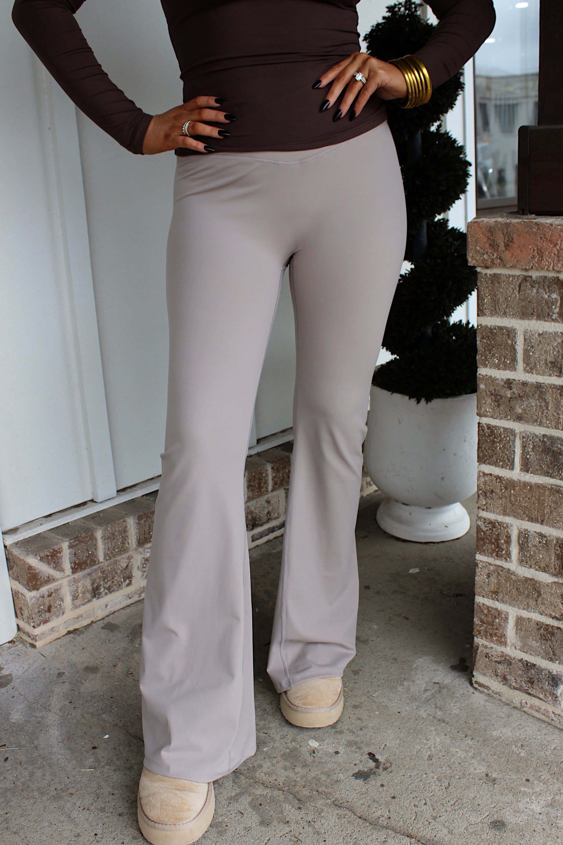 Crossover Flare Leggings In Taupe