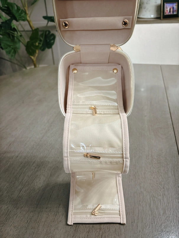 Expertly store and organize your jewelry with our Fold-Out Jewelry Case. Featuring a convenient fold-out design with 4 zippered sections and velvet lining, it offers plenty of space to keep your pieces safe and secure. And with the option to remove the fold-out, you can easily create open space for larger items. Available in 3 colors.
