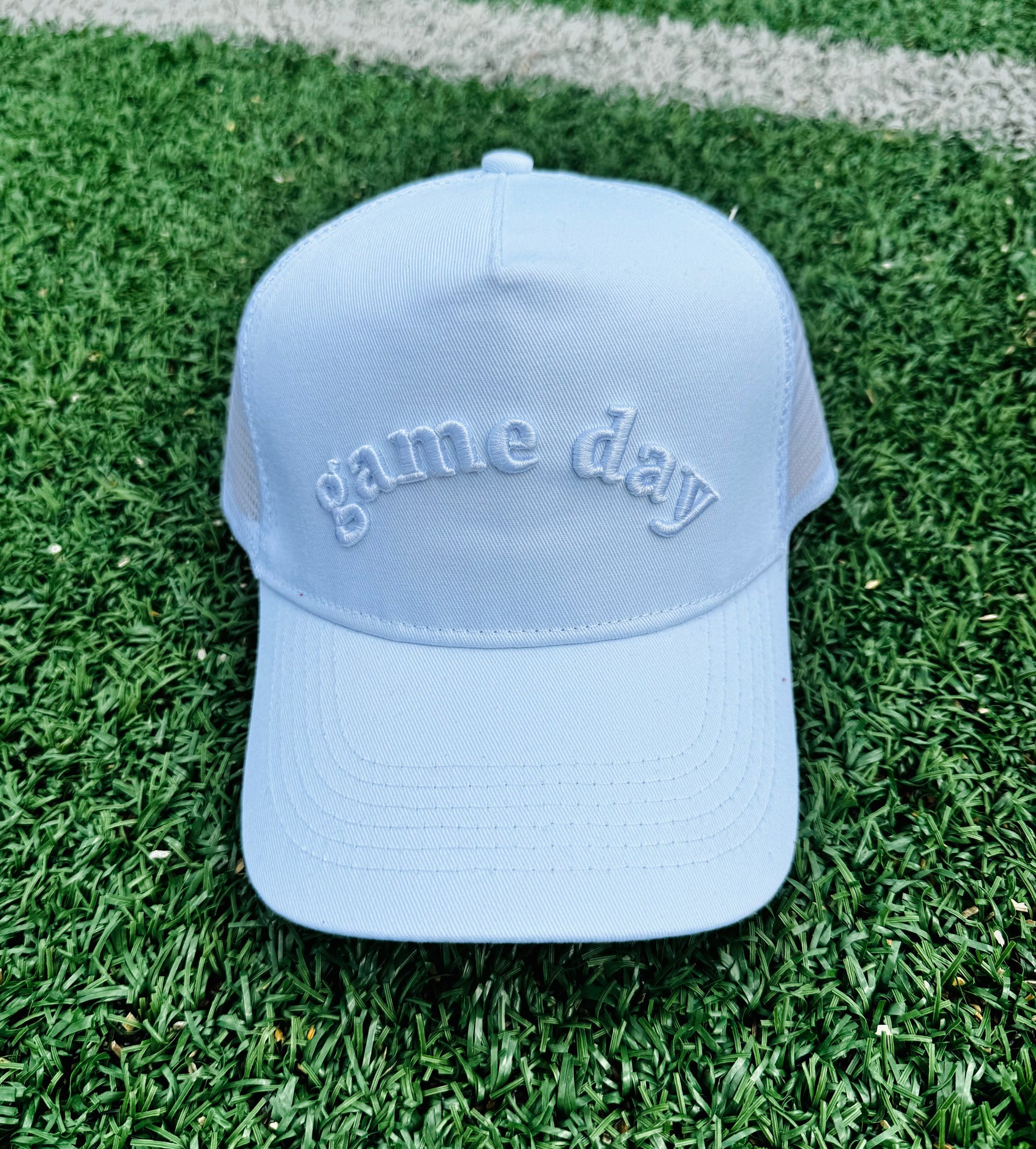 Get ready for the big game with our Game Day Embroidered Trucker Hat! Made with a white trucker hat and featuring playful embroidery, this hat will add some fun and flair to your game day outfit. Don't miss out on the coolest accessory for game day (or any day)!