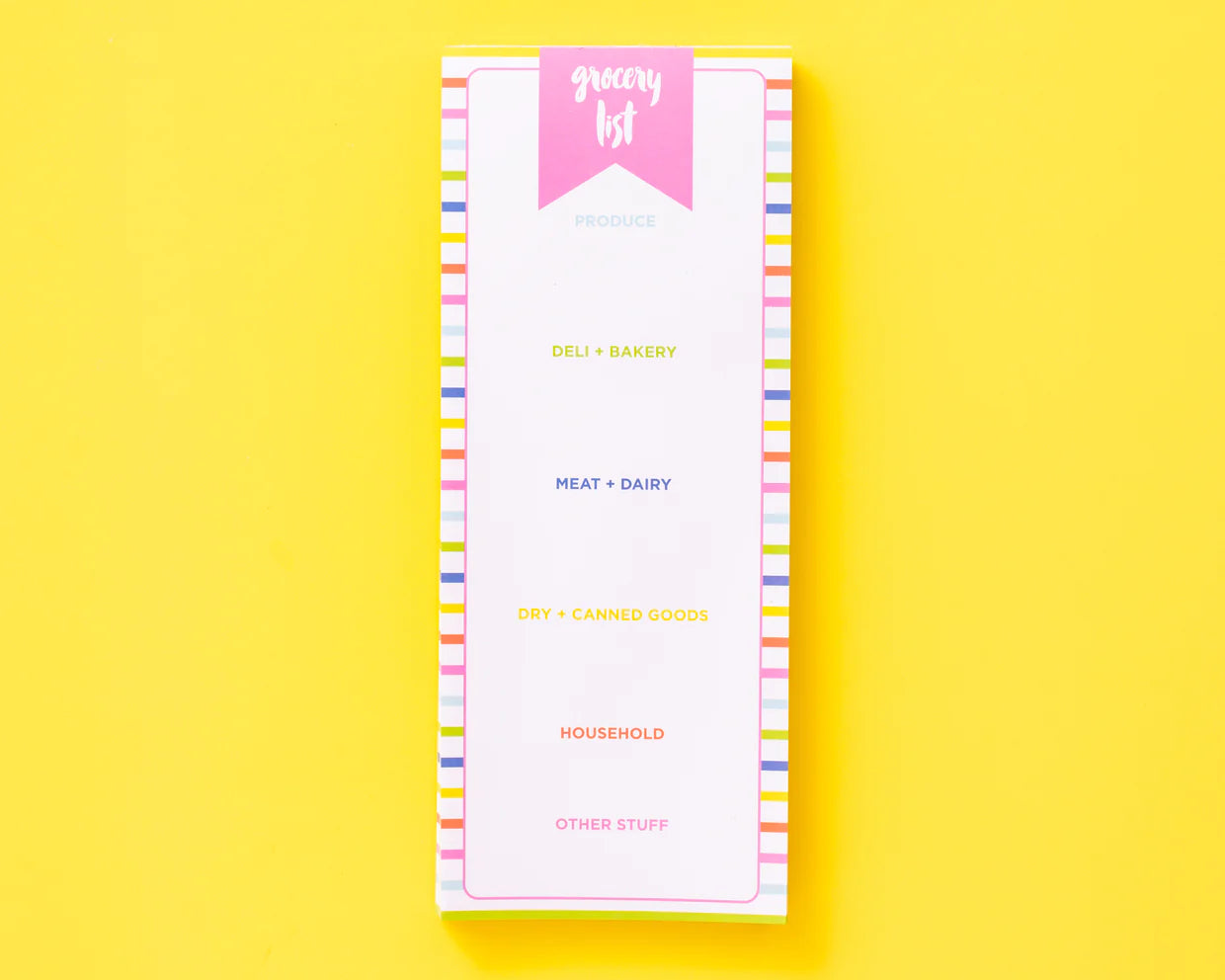 Never forget an item on your grocery list again with our Grocery List Pad with Magnet! Featuring colorful stripes, this pad sticks to anything magnetic, making it a must have for any busy shopper. Stay organized and have some fun with this quirky and practical product!