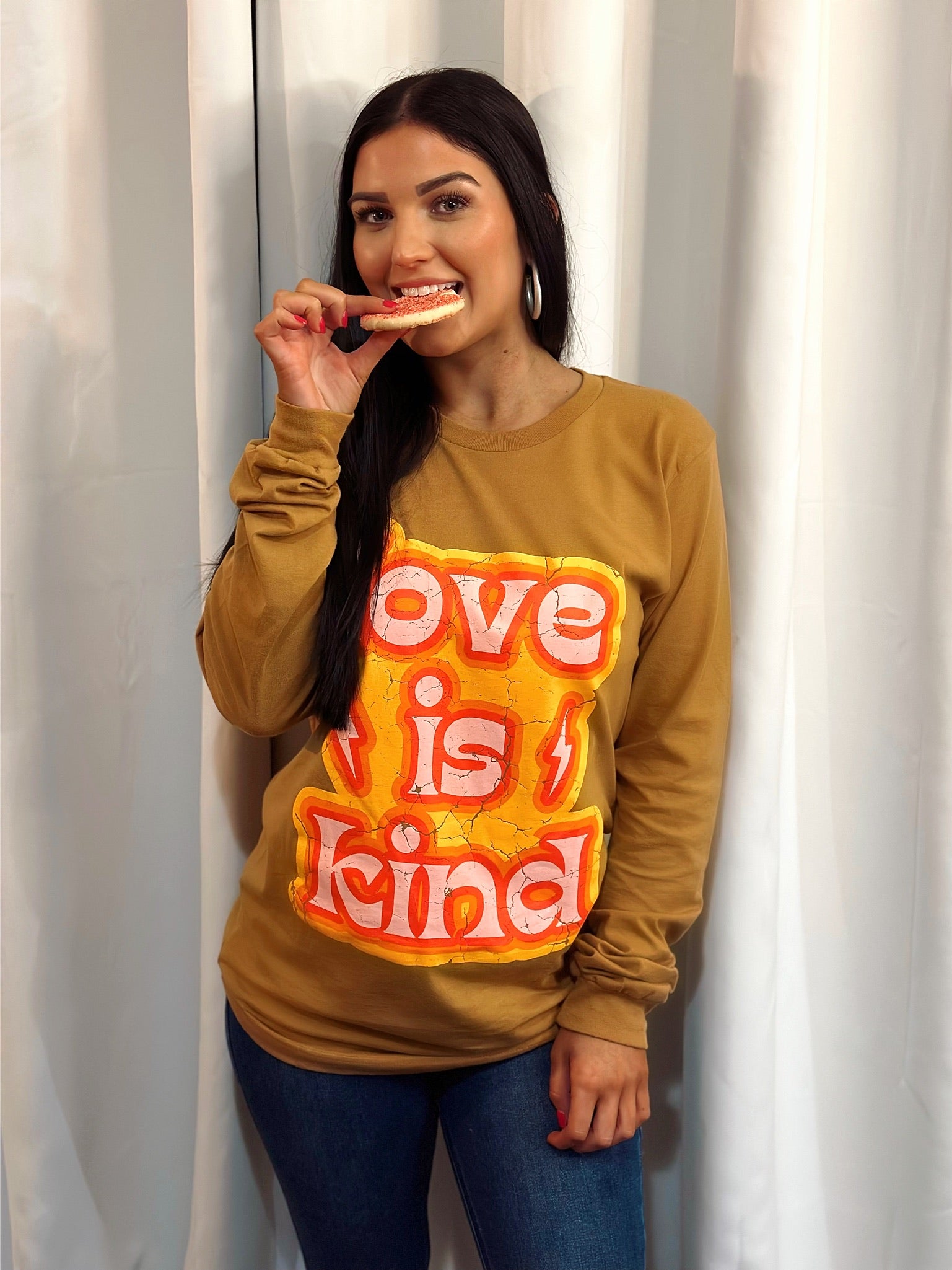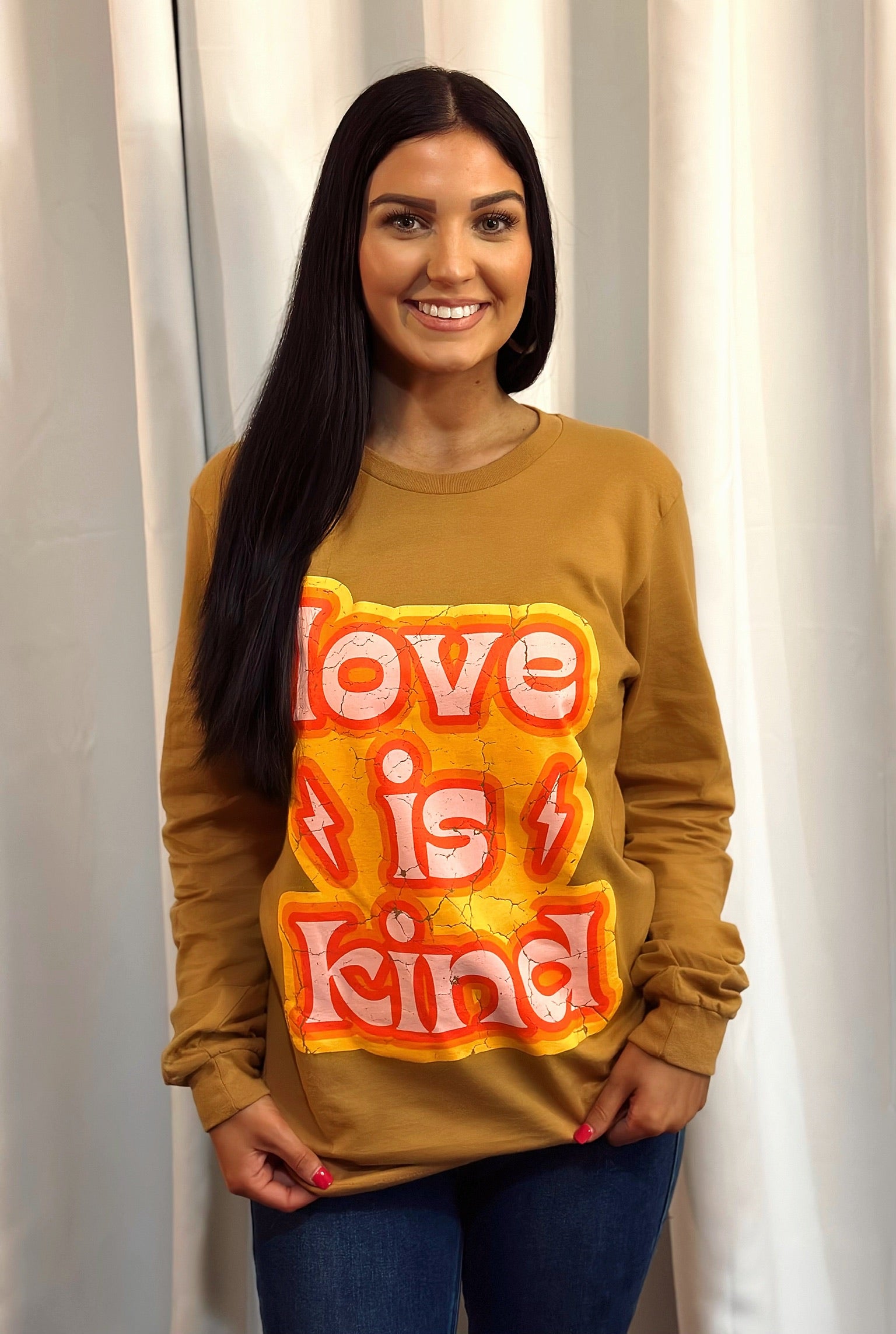 This tee was made with love in mind! Show the world your "kind" side with this cute and comfy top. Perfect for demonstrating your commitment to being more loving and compassionate. Spread the love in this stylish, one-of-a-kind tee. Wear it and show off your kind and tender heart!