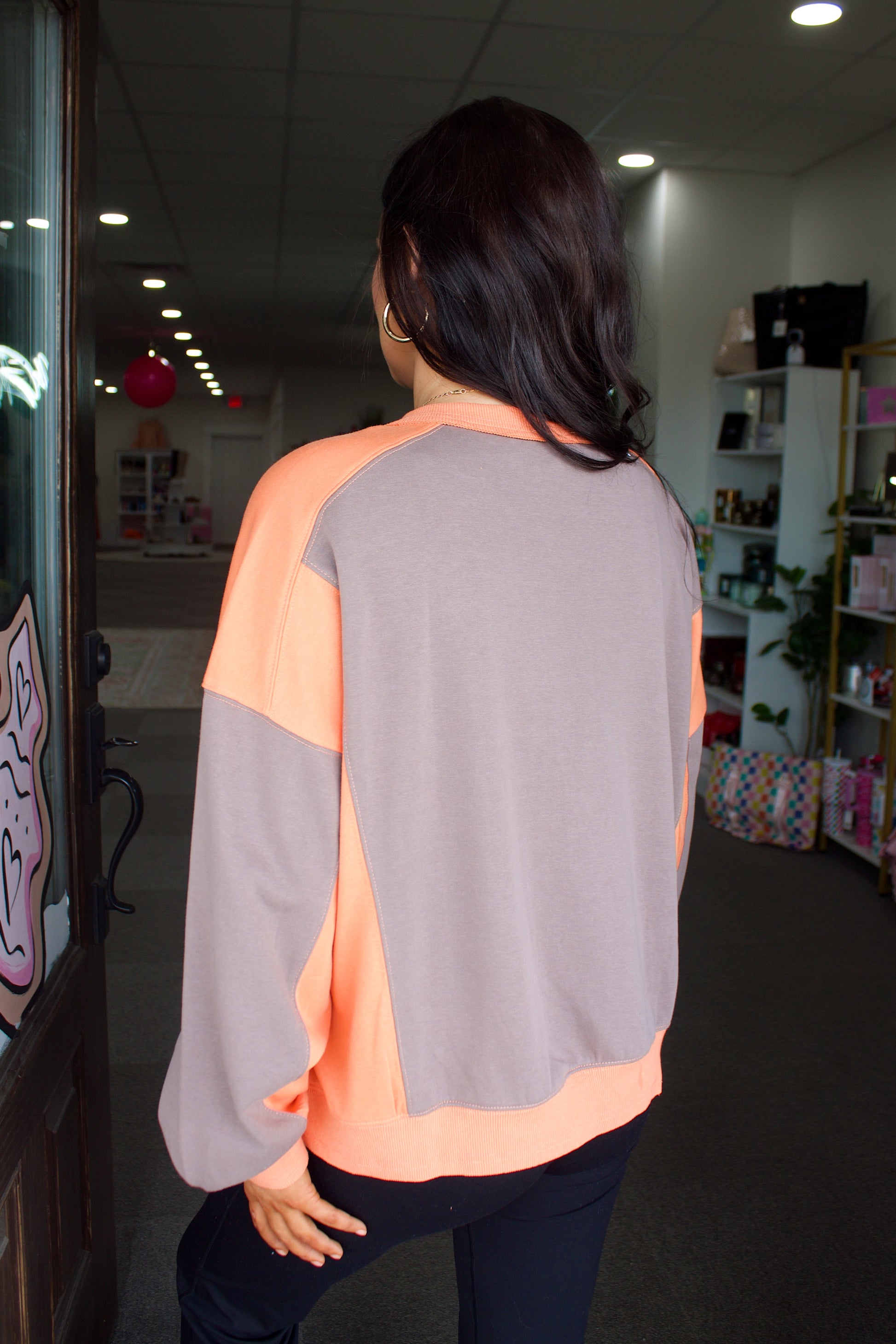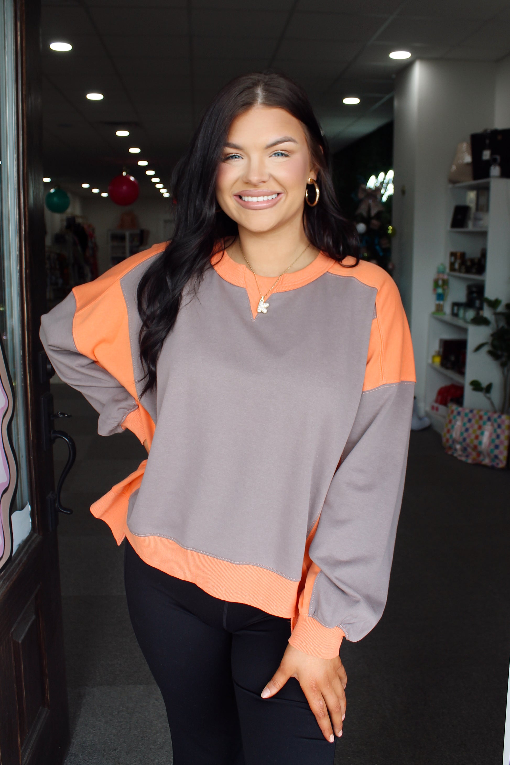 Get cozy in style with our Passing Time Colorblock Sweatshirt! The brown and orange color combo is perfect for the fall/winter season. This oversized sweatshirt is not only comfy, but also cute. Passing time has never looked so good!
