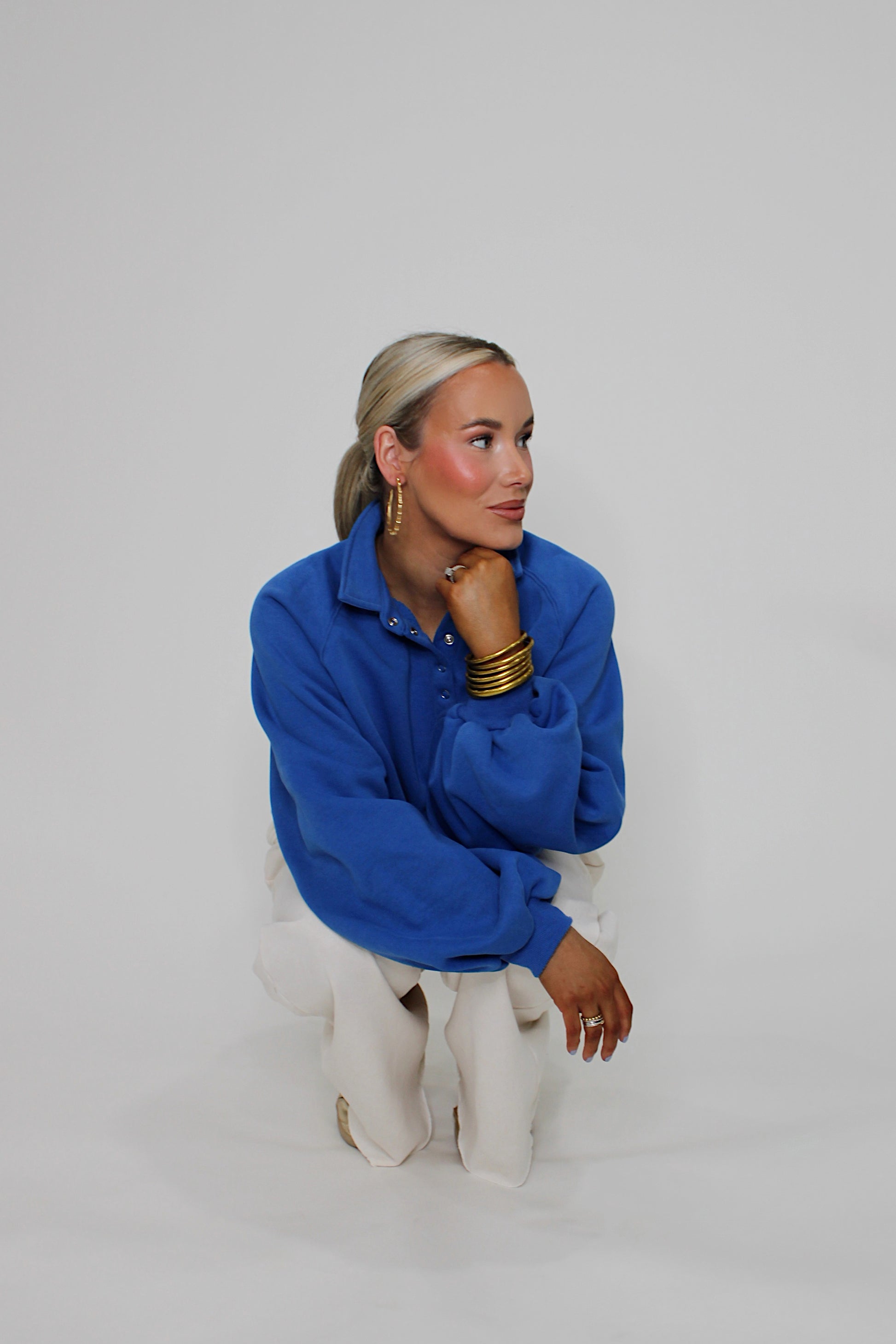Piper Snap Button Sweater - Royal Blue