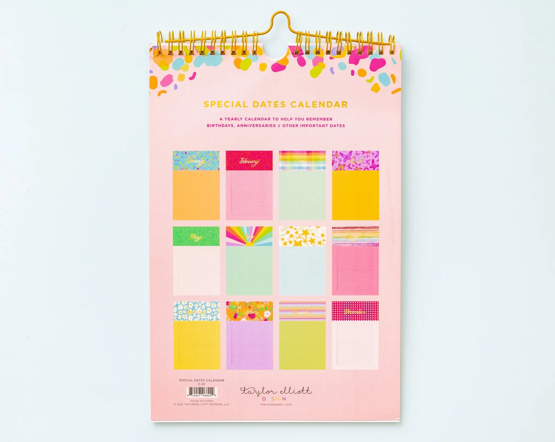 Stay on top of special dates with this cute and colorful calendar. It's the perfect way to stay organized and never forget important occasions. Don't miss a beat with this must-have item!