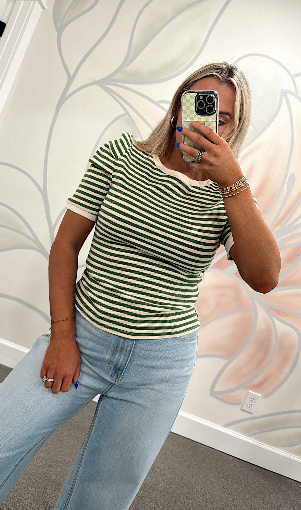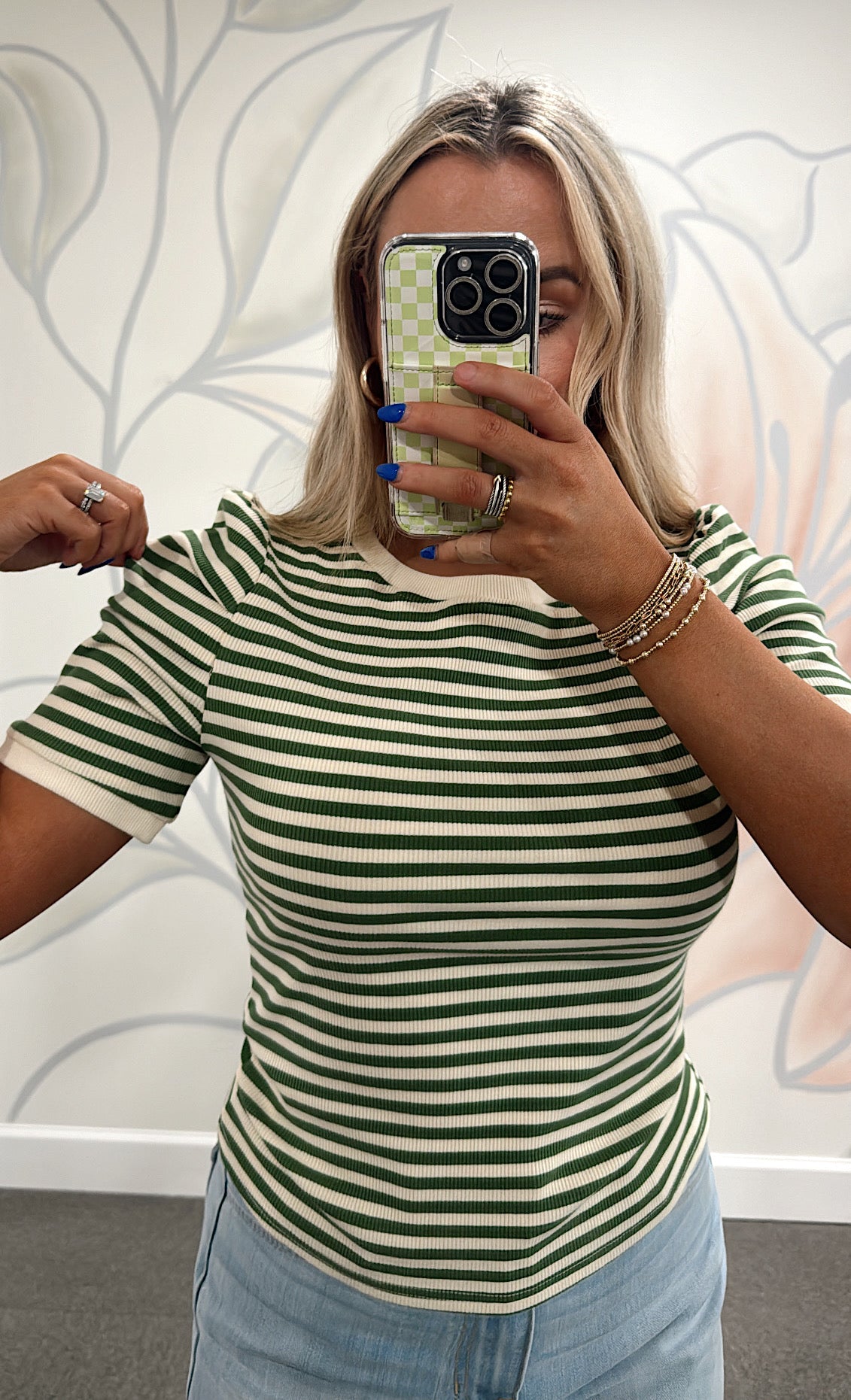 Add a splash of fun to your everyday wardrobe with The Amy Striped Top in Green. This fitted, green and cream striped top features charming puff sleeves that bring a playful twist to a classic basic. Perfect for daily wear, it pairs effortlessly with your favorite jeans or skirts for a fresh, lively look.