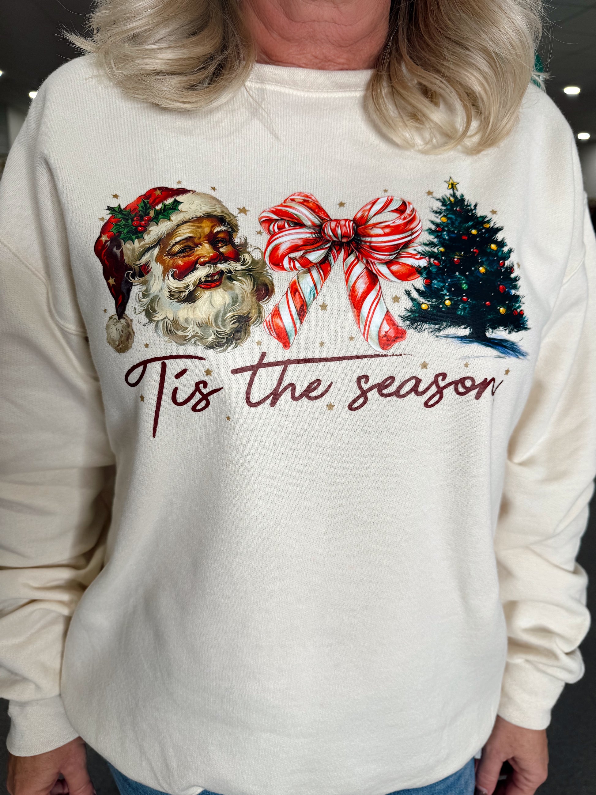 Get into the holiday spirit with our Tis The Season sweatshirt! Keep cozy and spread some cheer with this playful addition to your wardrobe. Perfect for any festive occasion. 'Tis the season to be jolly (and stylish)! XOXO