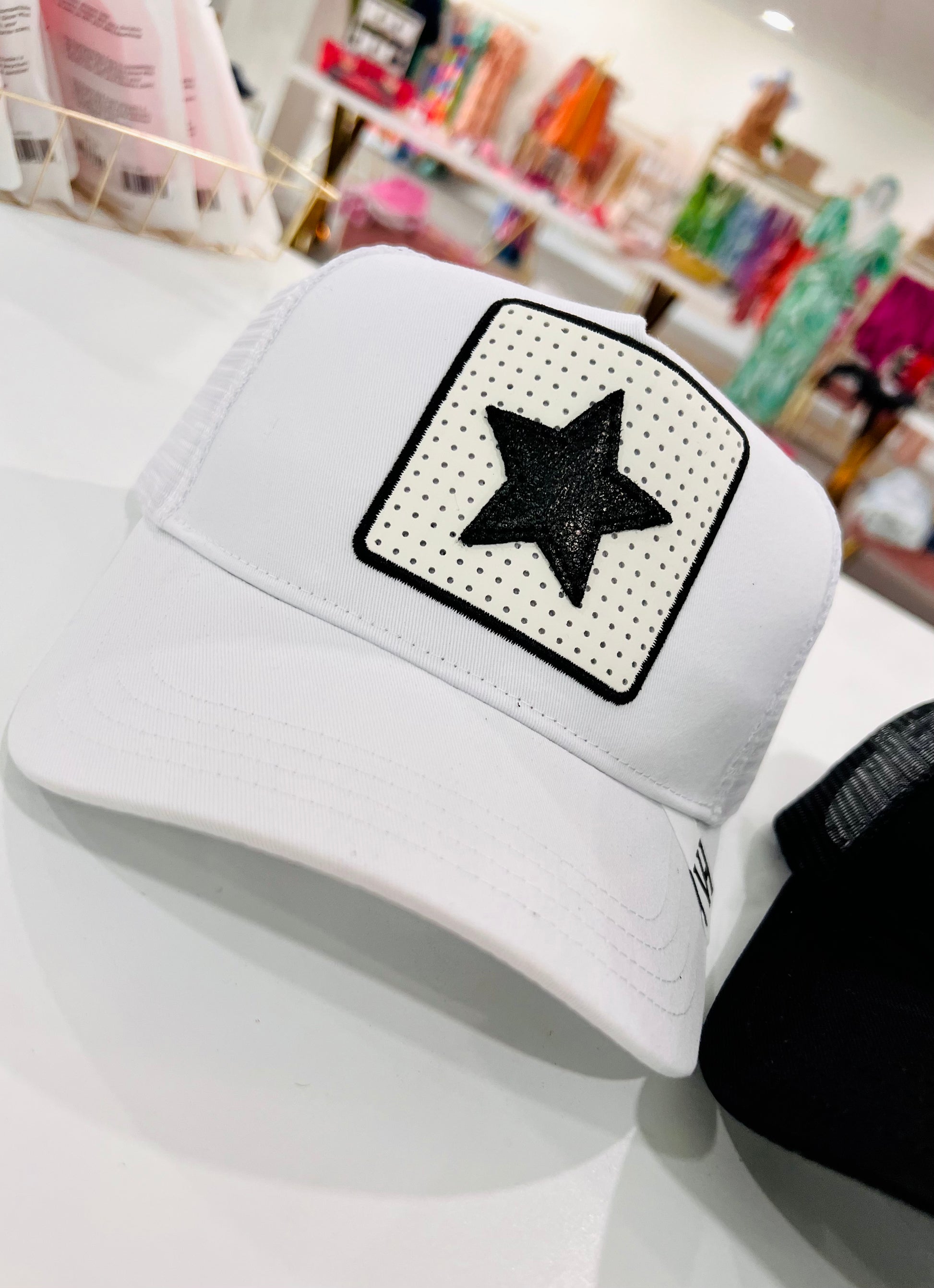 Reward yourself with the classic style and adjustable fit of the VH Star Hat. This luxe white hat features a sleek black star design, offering a timeless look that's perfect for any occasion. Find the perfect fit for your head with the adjustable strap.